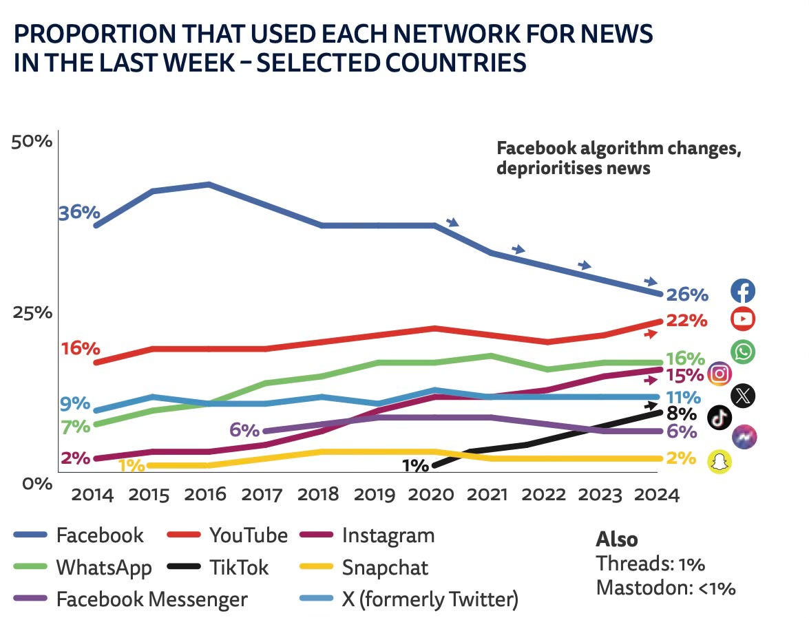 Similarly, as highlighted in the Reuter’s Digital News Report 2024, Instagram has, over the last ten years, seen a 13% increase in the number of users that access the site with the explicit intent of consuming news.